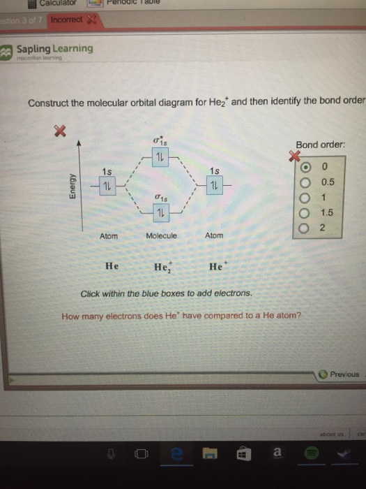 What is the orbital diagram of … Question 3 of 16 map& mapoob sapling leaning construct the molecular orbital diagram for he and then identify the bond order. • boxes or lines orbital filling order for elements beyond period 2 ….corresponds to atom's location in periodic table! Only 2 electrons per orbital, they must have opposite spin.