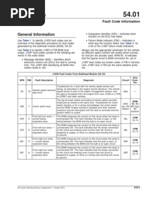 Bulkhead module fault codes pdf. Bulkhead module fault code information. J1587 sids for bulkhead module (bhm) mid 164 sid description possible fmi 053 bhm b1.k, b5.c—tail/clearance lamp output fault 5, 6 054 bhm b1.l—left high beam output fault 5, 6 055 bhm b1.n—main bhm power vbat3 input fault 3, 4. Flc 112 conventional century class conventional argosy coe cargo.