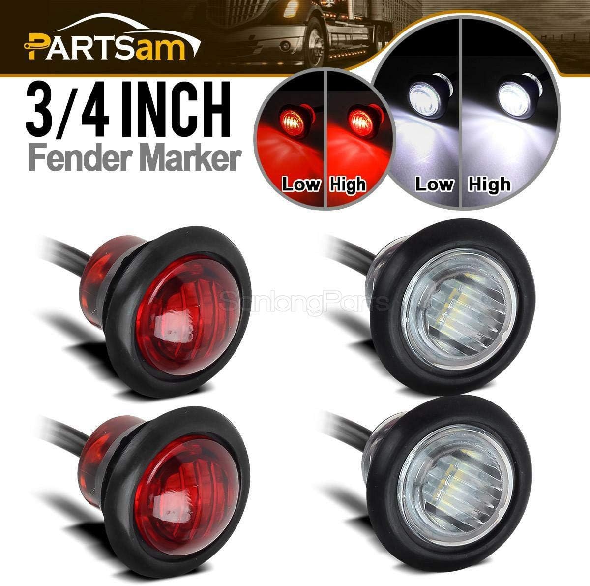 Partsam 4pcs 3 4 Inch Mini Round Bullet Led Marker Lights 3smd 3 Wire Grommet Fender Mount Aux Red Stop Turn Tail Brake Lights White Backup Reverse