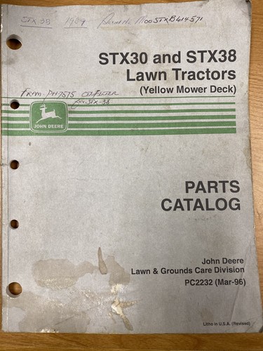 Does anyone have or know where i can get a owners manual and parts list for jd stx38 lawn tractor. When adding sae 30 oil to new pw, do we add to the. John deere parts catalog download. Pdf service this service manual information are specifically for john deere lawn tractors: